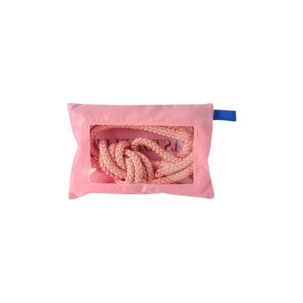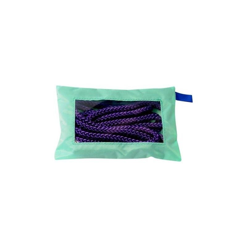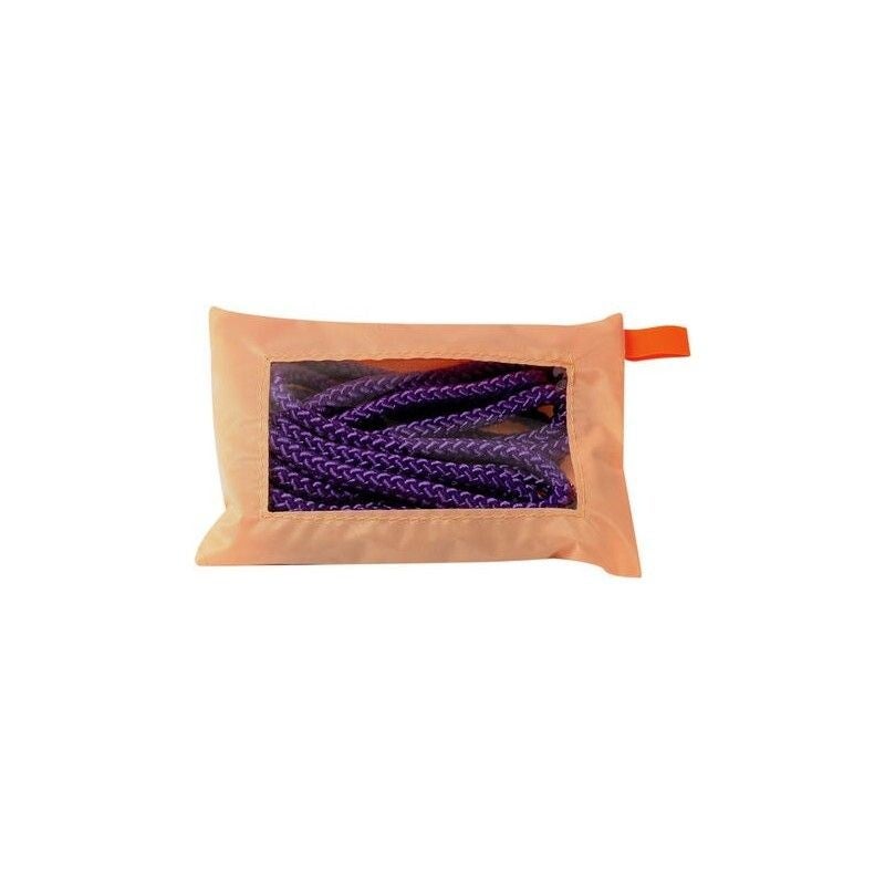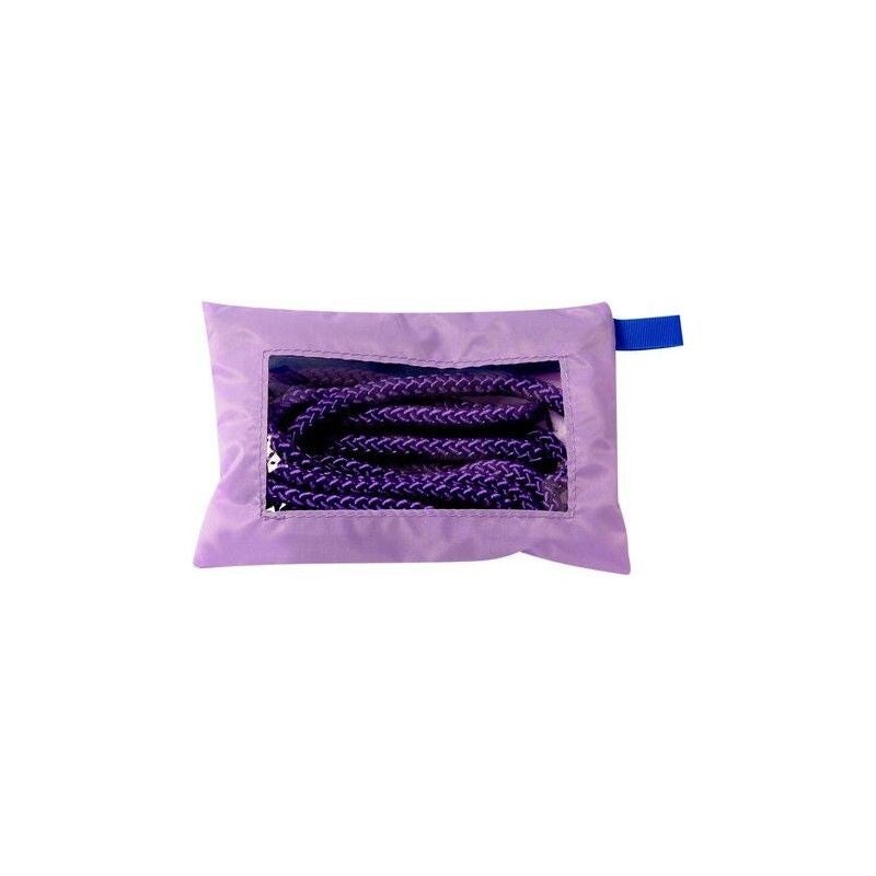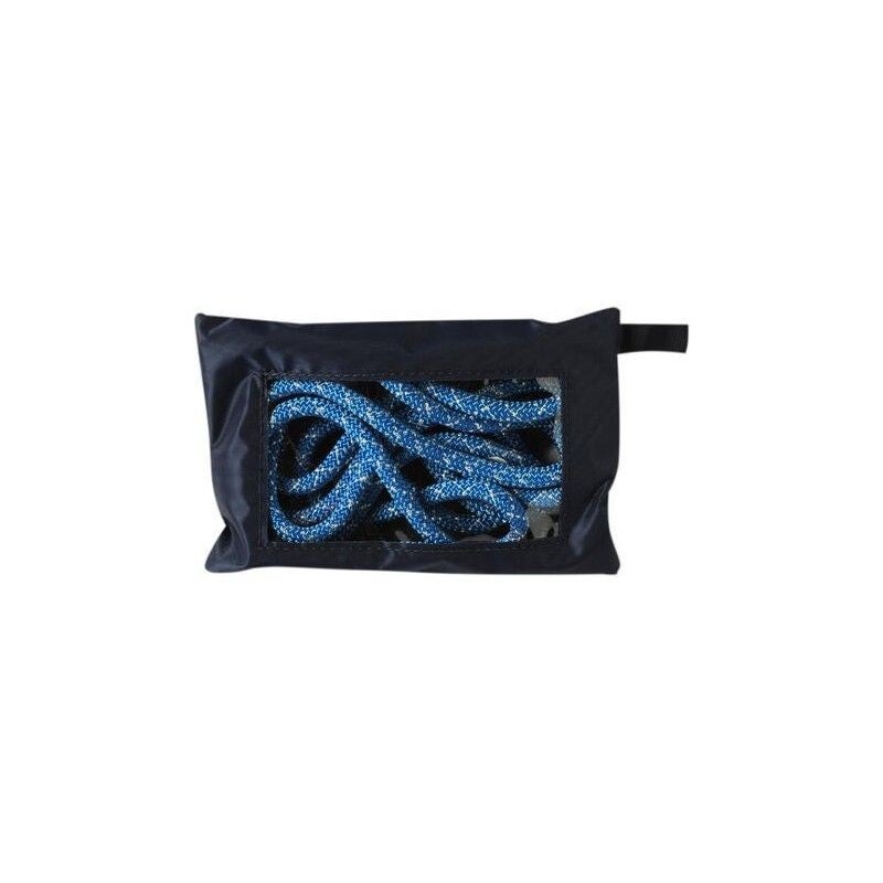 Práctico estuche en tela impermeable para guardar la cuerda. Cremallera y ventana transparente en la parte posterior.