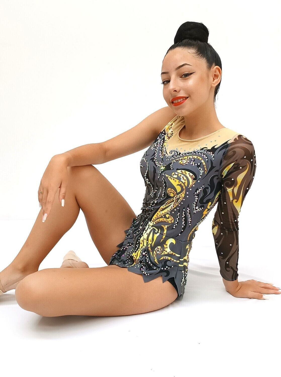 Perfecto para gimnasia rítmica, patinaje artístico o danza. Disponible en tallas juveniles y adultas. ¡Haz que tu rutina brille con fuerza y elegancia!