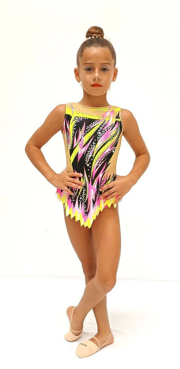 Perfecto para destacar en el tapiz, este maillot infantil combina estilo, comodidad y un diseño enérgico ideal para competiciones de gimnasia rítmica.