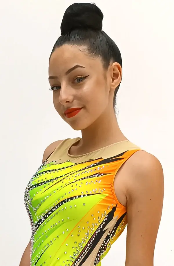 Este maillot de gimnasia rítmica es la elección perfecta para gimnastas que quieren transmitir energía, alegría y seguridad en sus presentaciones. Un modelo vibrante que no pasará desapercibido.